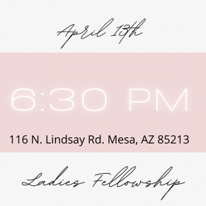 april, 2021 Ladies Fellowship 13apr6:30 pm7:05 pmLadies Fellowship Event Details Event Details Time(Tuesday) 6:30 pm - 7:05 pm CalendarGoogleCal